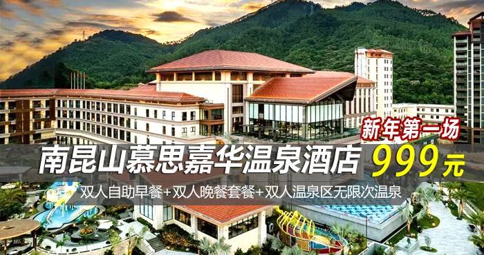 【兔年“特惠”套票|美食特惠套票】¥999抢南昆山慕思嘉华温泉酒店园景房/山景房(随机)享受双人自助早餐+双人套餐+双人温泉区无限次温泉,一栏山湖全景天然氧吧!