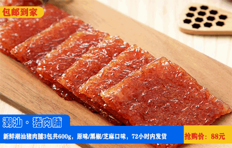 【潮汕猪肉脯600g·包邮到家】不正宗不新鲜可退款!鲜甜劲道、汁浓肉厚~88元秒杀潮汕猪肉脯3包(原味/黑椒/芝麻)共600g,独立包装方便保存,胶己人都竖起大拇指~好评100%